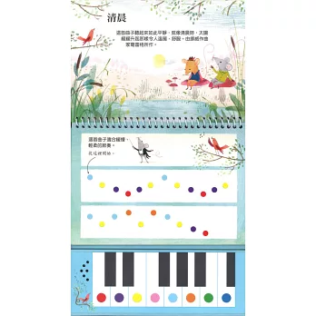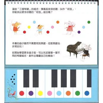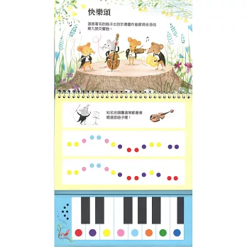 收錄數首膾炙人口的兒歌,搭配顏色指引,小小手也能彈奏出優美曲調。兼具聽覺與視覺,認識顏色、音符以及知名兒歌的起源故事,搭配欣賞細緻優雅插圖,讓孩子不只玩音樂,更是音樂與美術鑑賞的入門好書。親子共讀時,家長能利用顏色譜曲、孩子彈奏,甚至孩子也能試著自己仿效用顏色譜曲並彈奏喔!